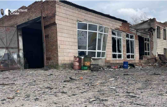 On April 9, Russian troops attacked Okhtyrka with two drones. The drones hit the territory of a transport enterprise.