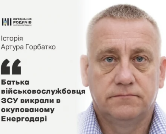 Artur Gorbatko was a civilian. He worked as a chief electrician and had chronic heart, back and knee diseases. The family suggests that the reason for the abduction could be the position of his son, who helped the Ukrainian military and is an active serviceman of the Armed Forces of Ukraine. The whereabouts of Artur Gorbatko still remain unknown.