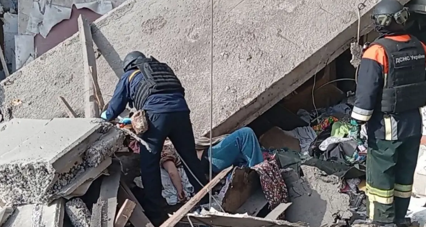 On the afternoon of November 4, the Russians once again launched an airstrike on Dobropillya. Among the rubble of a partially destroyed 5-story residential building, rescuers found an injured man on the 3rd floor – he needed help.