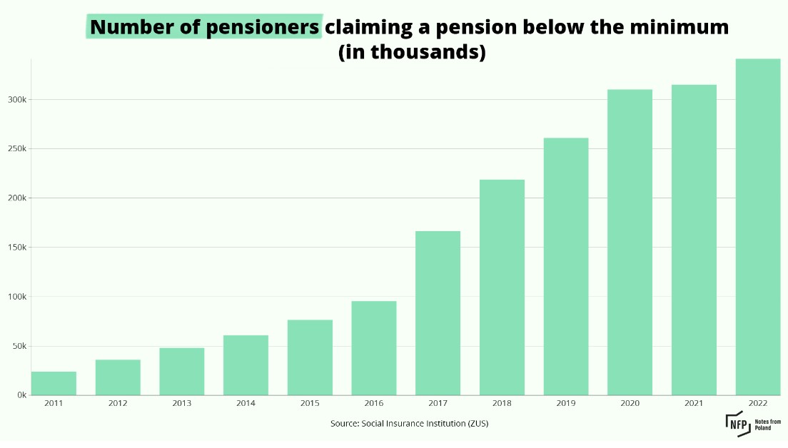 At the same time, the number of retirees receiving less than the minimum pension has increased significantly in recent years. These are people who have not worked a sufficient number of years or made sufficient contributions to qualify for the statutory minimum.