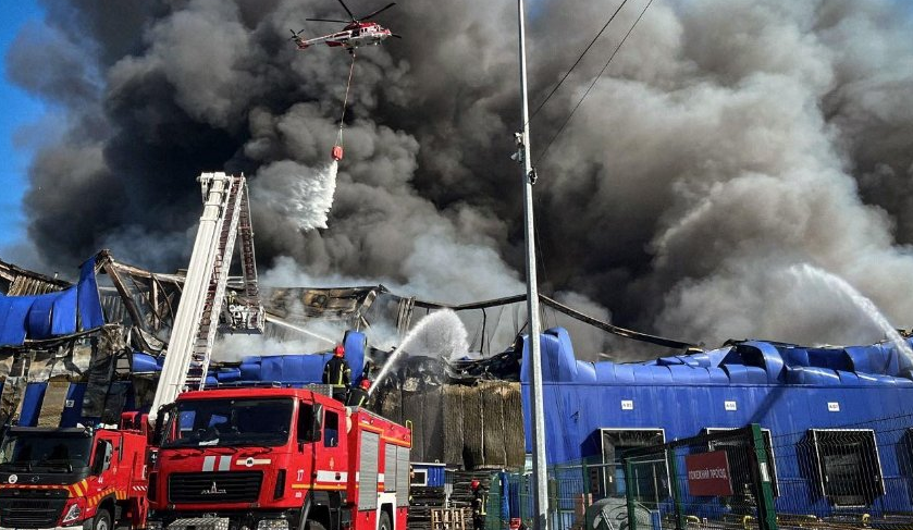 A large-scale fire broke out at a civilian facility in Kyiv region as a result of another Russian strike. The fire covered a significant area, but within a few minutes dozens of units of the State Emergency Service of Ukraine were working at the scene.