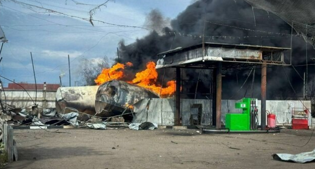 On April 6, a Russian drone struck a gas station in the village of Zolochiv, Bogodukhov district. According to the State Emergency Service, two fuel tanks caught fire.