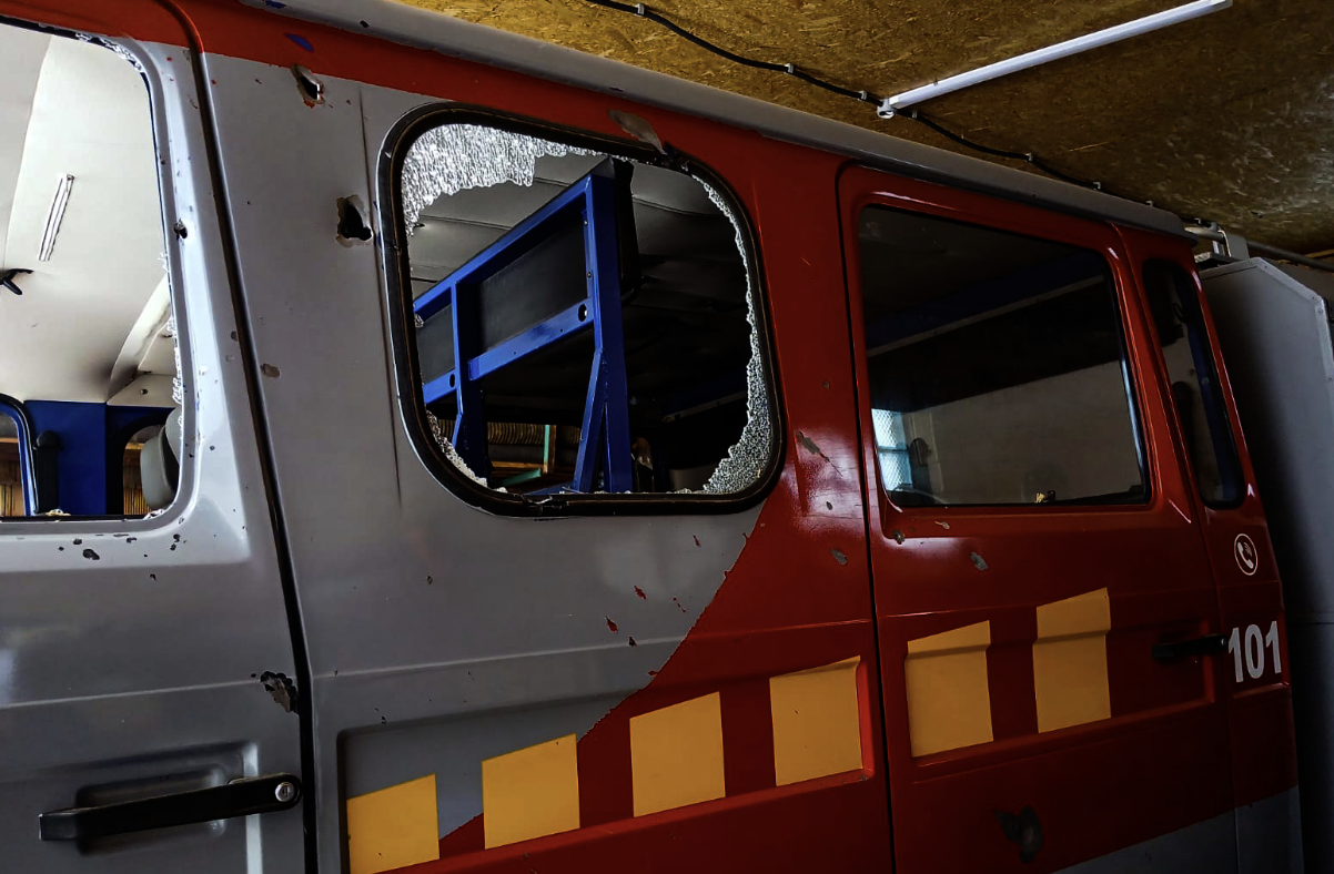 In the Synelnykу district of the Dnipropetrovsk region, while extinguishing a fire, the Russians struck again at firefighters and damaged a fire truck. Fortunately, there were no casualties or injuries.