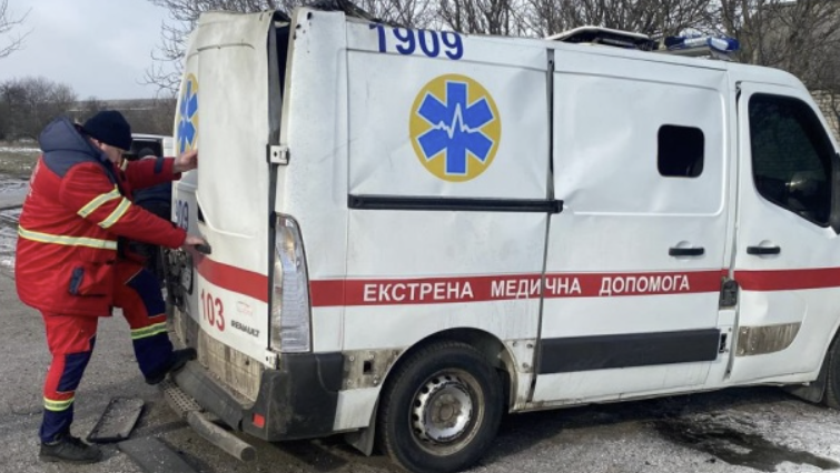 According to the district military administration, a civilian car, an emergency medical vehicle, and an Ukrposhta vehicle were damaged.