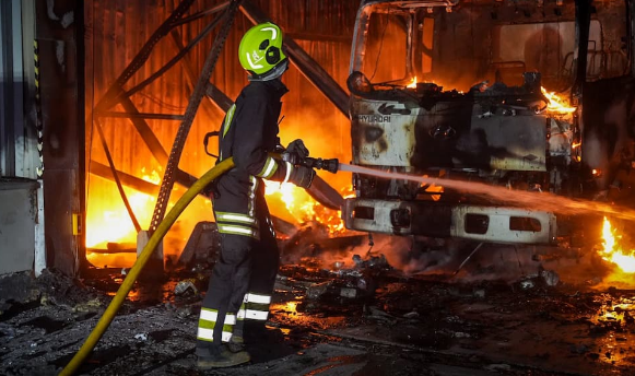At night, Odessa was again attacked by Russian kamikaze drones. As a result of the hit, a warehouse caught fire, and a truck was also damaged, the State Emergency Service reported.