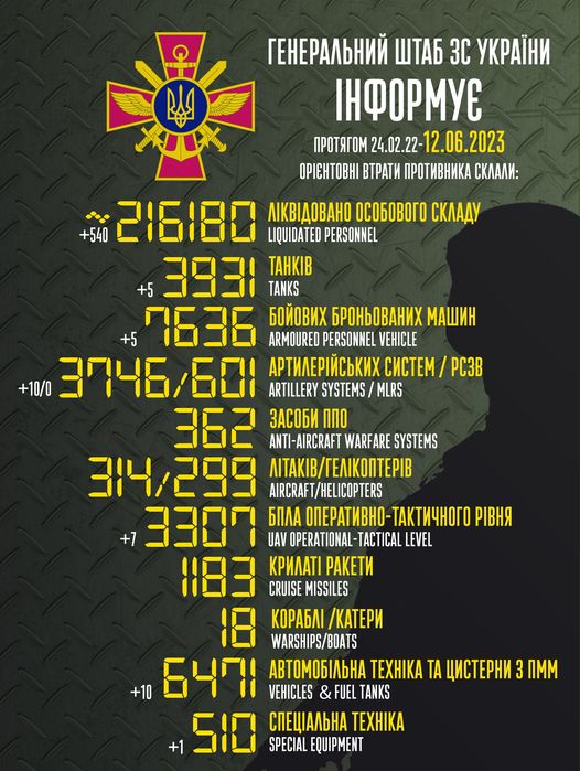 The adversary focuses its main efforts on Lyman, Bakhmut, Avdiivka, and Mar’inka axes, heavy fighting continues. During the day of June 11, there were 25x combat engagements.