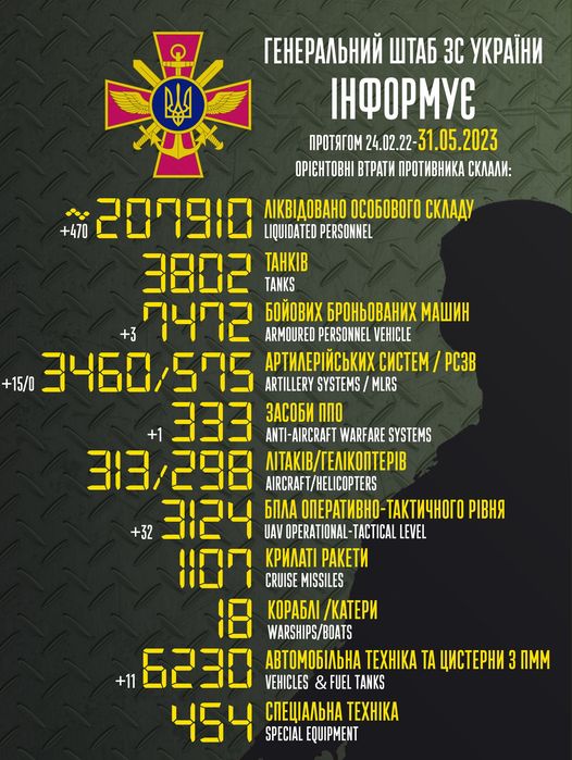 During the day of May 30, the adversary launched a total of 64x air and 1x missile strikes, 88x MLRS attacks.