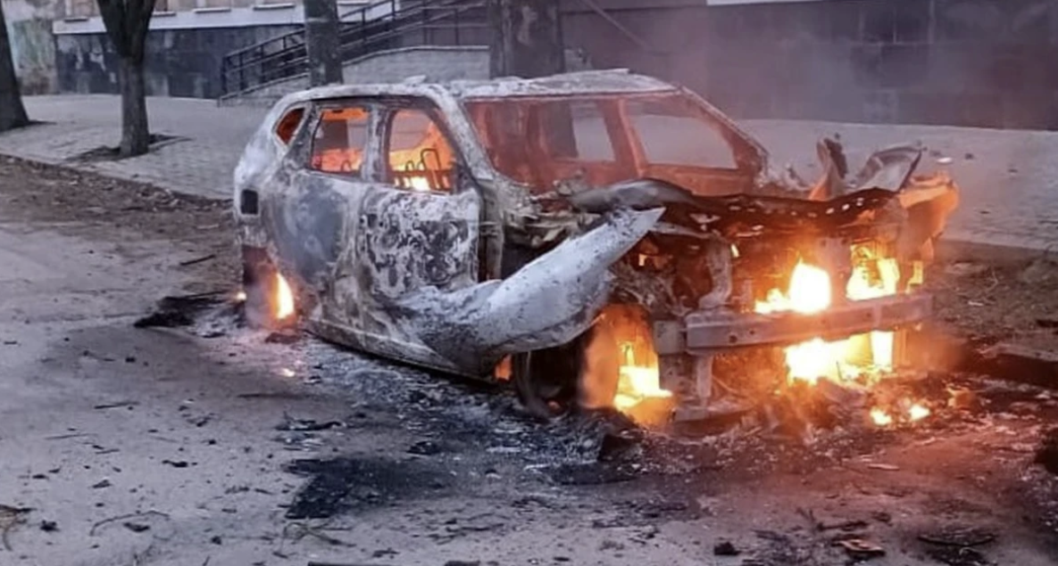 Two police officers injured and official car destroyed in Kherson