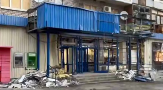 Last night, the Russians used a Molniya strike drone to hit the entrance to the ATB supermarket in the Kosmichny district of Zaporizhzhia.